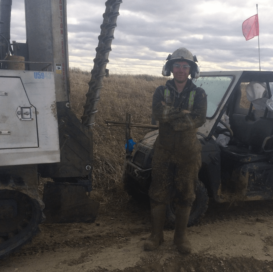 During high school I worked in a shop that did seismic drilling operations, this meant lots of maintenance and fabrication work. Here I learned how to diagnose and fix problems with all sorts of different equipment. After completing high school I decided to try working in the field with the actual drilling operations, leading me to become a seismic drill assist. As seen below, it was a very muddy introduction to working in the energy industry!